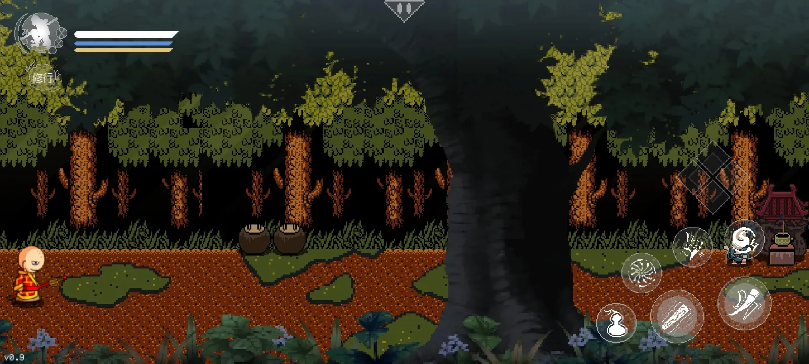 《黑神话像素版唐三葬模组国际版》是一款基于国产动作游戏《黑神话:悟空》改编的像素风格横版闯关手游,由B站UP主火山哥哥与阿铭敲厉害联合打造。该模组将经典角色孙悟空替换为其师父唐三藏法师,玩家可操控这位“物理超度大师”使用远程法术与近战法杖,在观音禅院、盘丝洞等十余个像素化场景中挑战小狼妖、金池长老、黄风大圣等经典BOSS。游戏完美复刻端游核心战斗机制,通过虚拟摇杆控制移动闪避,结合攻击与技能按键实现蓄力劈棍、棍花闪避等特色动作,同时融入“敲钟解锁区域”“打坐恢复能力”等探索元素,为玩家带来兼具怀旧情怀与创新体验的西游冒险之旅。