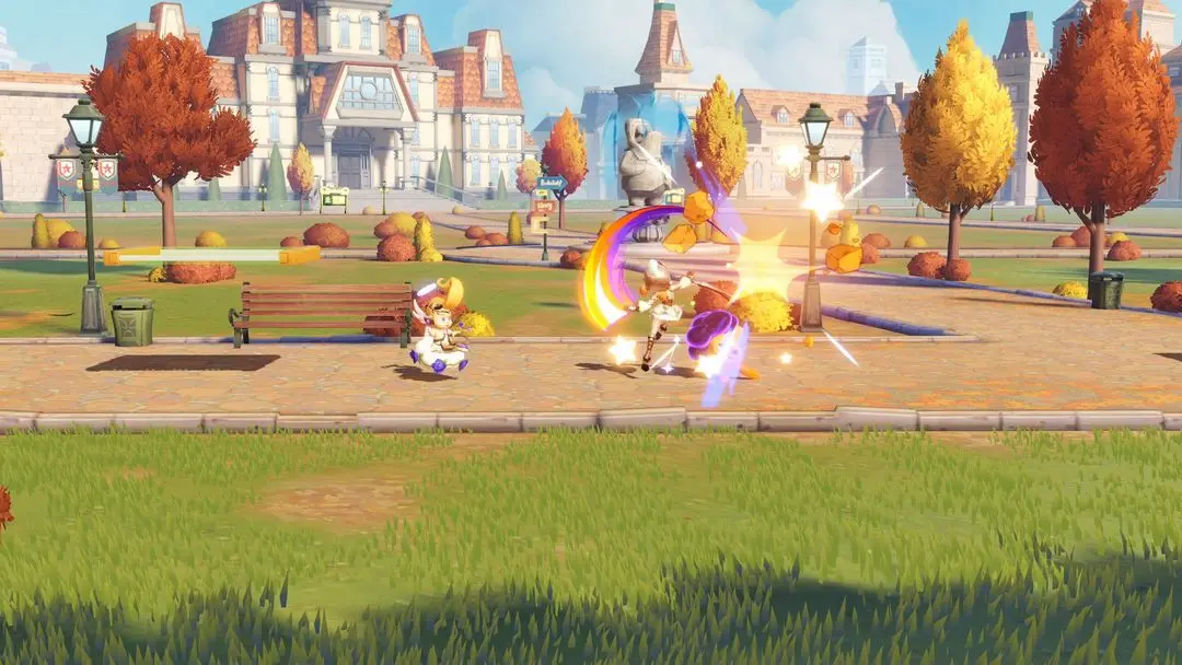 2. 深度策略玩法:游戏采用“击飞值”替代传统血条系统,玩家需通过组合攻击、技能衔接与地形利用累积对手击飞值,同时利用角色的返场技能(如二段跳、冲刺)避免被击飞出界,形成“攻防一体”的战术博弈。