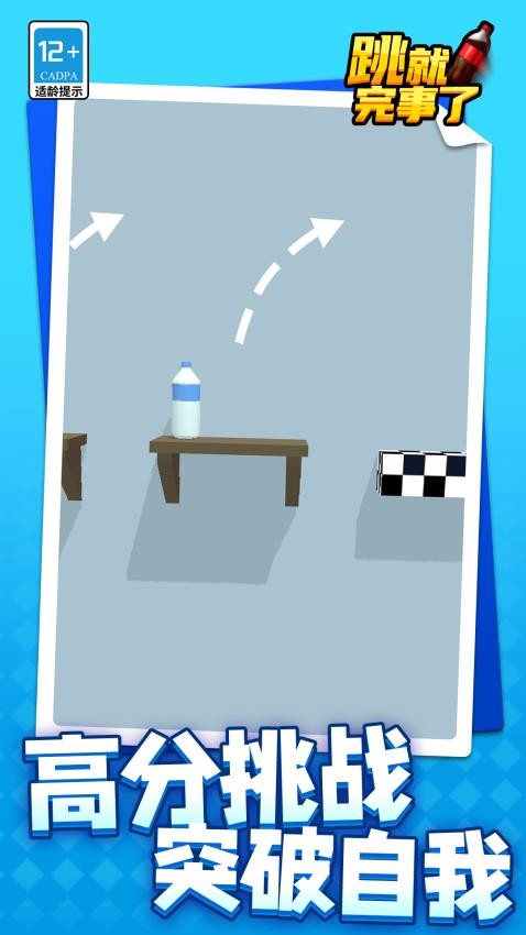 《跳就完事了完整版》是一款以物理弹跳为核心玩法的休闲益智手游,凭借Q版卡通画风与真实物理引擎打造出兼具趣味性挑战性跳跃世界。玩家操控矿泉水瓶、可乐瓶等50余款创意皮肤角色,在客厅、厨房、办公室等十余种家居场景中完成连续跳跃,通过精准控制力度与方向避开尖刺、锅碗瓢盆等障碍,最终抵达终点旗帜。游戏融合单人闯关、多人对战、限时竞速三大模式,支持道具创意组合与动态难度调节,200余个关卡从基础跳跃到复杂连跳层层递进,配合好友排行榜与成就分享功能,构建出轻松解压与竞技深度并存的沉浸式体验。