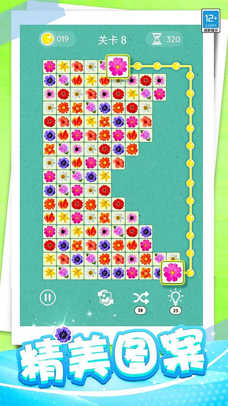 3. 道具辅助系统:提供“洗牌”“提示”“炸弹”等道具,玩家可通过通关奖励或内购获取。例如,“洗牌”道具可重新排列所有图案,帮助突破卡关困境,但每日使用次数上限为3次。