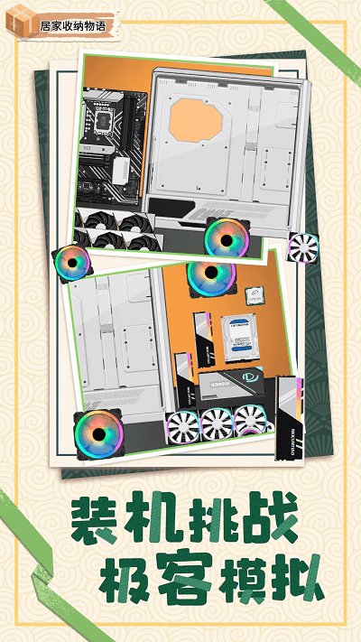 1. 多元化场景设计:游戏涵盖全屋收纳场景,从冰箱、衣柜到电脑组装,每个关卡均还原真实生活细节,如“电脑组装”关卡需将主板、显卡、内存条等零件按顺序安装。
