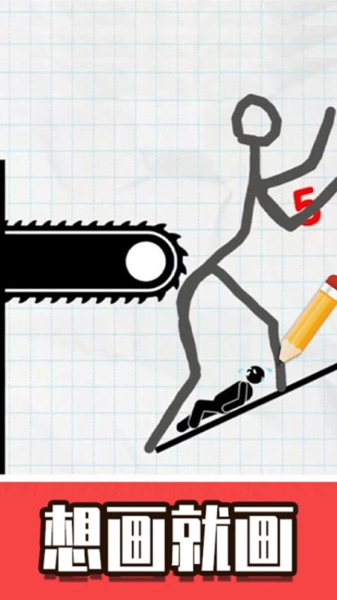 2. 自由绘图机制:无固定解法,玩家可自由发挥创意。某关卡中,玩家用火柴人自身肢体作为防御工具,画出“大字形”火柴人阻挡飞箭。