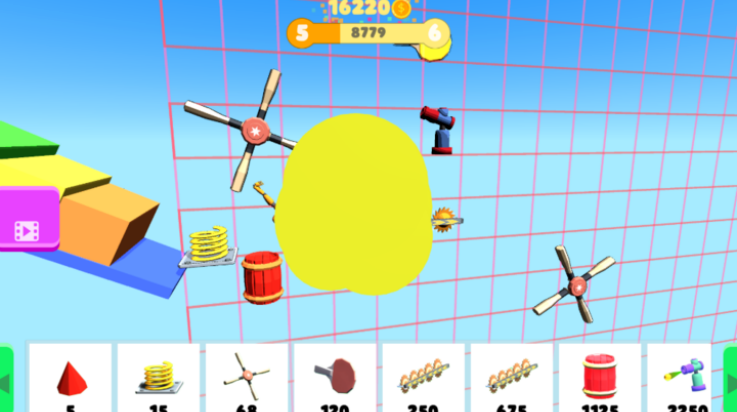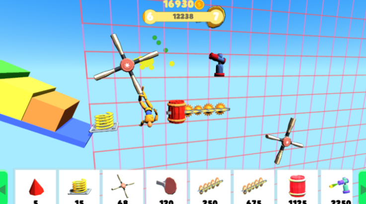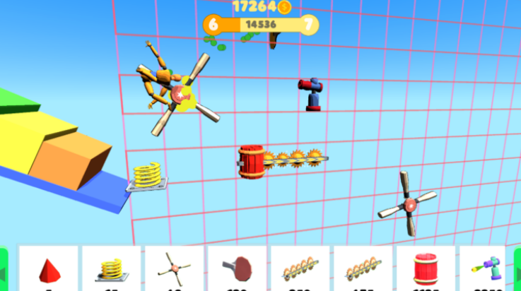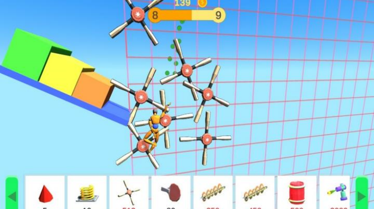 1. 道具组合实验:玩家可自由叠加齿轮、炸弹、风扇等上百种道具,例如将油桶与爆炸物连接触发连锁爆炸,或利用风扇旋转力量带动布娃娃撞击设施,观察不同组合产生的物理反馈。