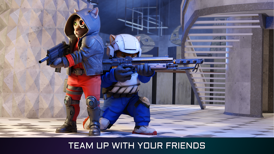 2. PVP模式:支持4人组队竞技,玩家需协同占领据点或完成爆破任务,沟通配合是关键,例如突击喵吸引火力,科技喵破解电子门锁为队友开辟通路。