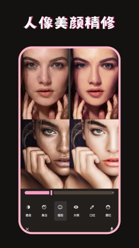 1. 拍摄与初步优化:使用内置“专业相机模式”拍摄高清原图,或导入照片后通过“人像美颜”模块进行基础面部调整,如磨皮、瘦脸、大眼等,支持自定义参数微调。