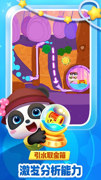 2. 环境互动解谜:在“流体探秘”关卡中,儿童需规划水流路径,利用水的浮力使洞底的宝箱上浮,同时操作移动容器、水车机关等道具清除障碍,考验对物理原理的理解与应用。