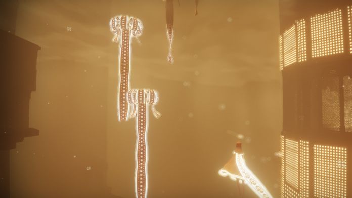 2. 守卫之龙:唯一敌对生物,平时盘旋于高空,在“谷底”章节会主动攻击玩家,投射光圈锁定目标后俯冲撞击,削减围巾长度并迫使玩家收集布条修复。