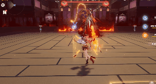 首先是冰属性阶段,冰属性阶段女士并不好动,大部分时间会停留在场地中间使用各种远程技能攻击玩家,同时虽然是冰阶段但女士冰属性的抗性并不是很高,所以神里的大招一类的技能也都能够造成不错的效果。