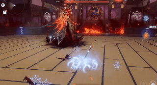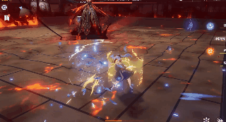 在火属性阶段中,女士会更加好动,而且由于女士身边会固定有一片烧灼的地面, 所以建议还是使用远程角色来处理第二阶段的技能。