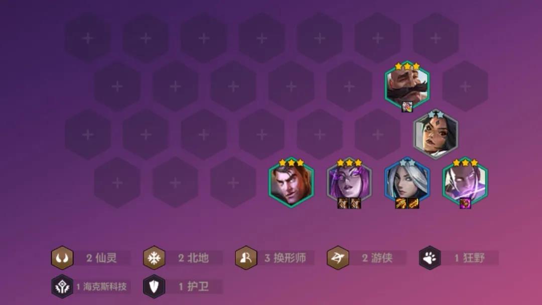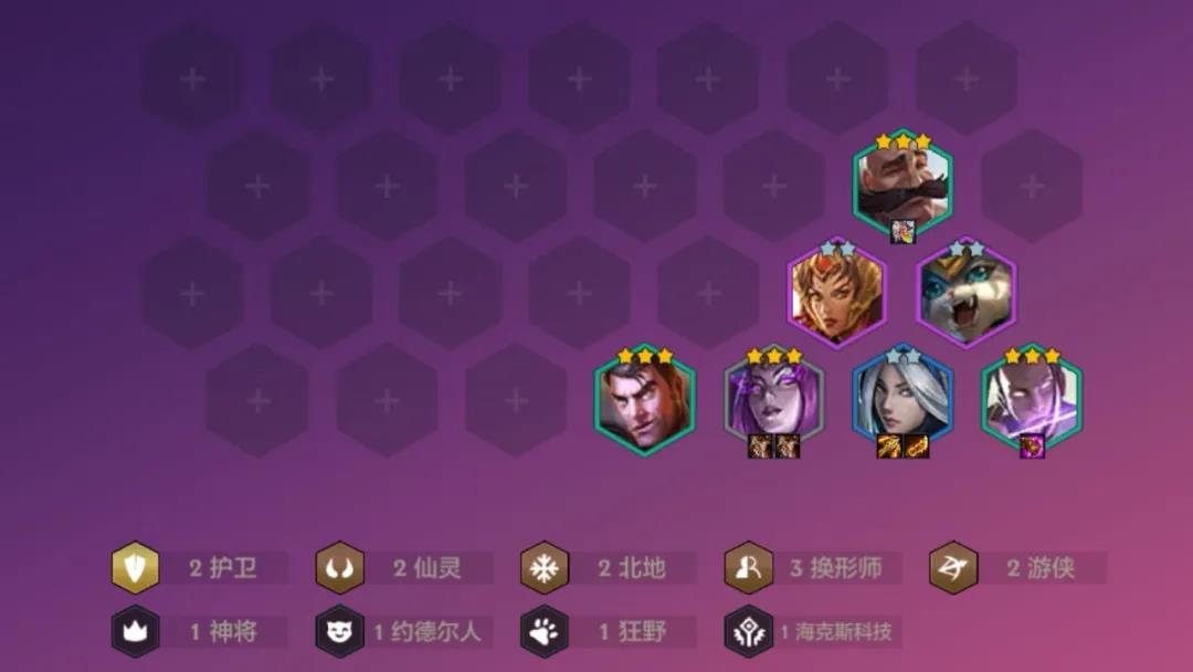 北地之盾-弗雷尔卓德之心(2)、西斗之飒-狂野女猎手(1)、未来守护者-杰斯(2)、蛛后-蜘蛛女皇(1)、臻冰之箭-寒冰射手(3)、迅箭-维鲁斯(2)