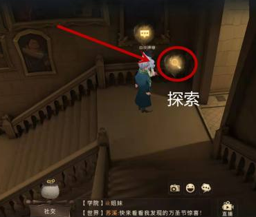 2,在城堡走廊位置再向上爬一个楼梯,在如图位置点击探索图标即可获得500南瓜馅饼奖励。