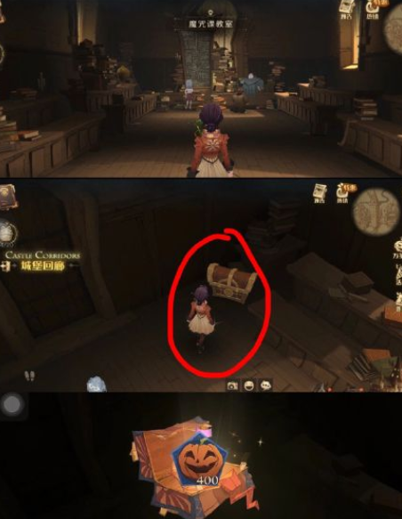 1,城堡主楼——魔咒课教室——视线往后转——角落宝箱