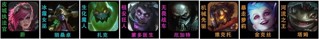 最后是通用的特殊效果类的,阵容高费卡多,每张高费卡穿装备都有作用,比如蒙多的肉装、金克斯/维克托的装备等等,所以在这个阵容中,装备类的海克斯强化很好用。