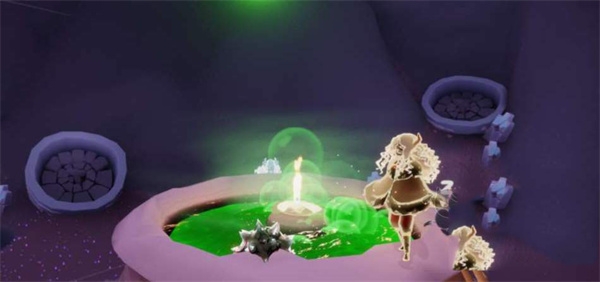 2、大锅前面的绿色光球需要点燃,魔药锅里面会不定时吐出小黑球,点燃这个会获得随机魔法;