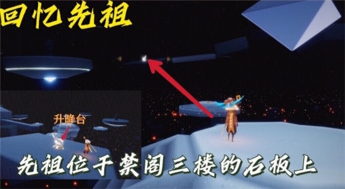 到达禁阁之后直接前往电梯房,然后乘坐电梯前往第三层,在下图所示的石板上找到回忆先祖。