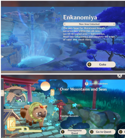 渊下宫将在2.4版本被实装,备有日月之轮「常夜」和「白夜」,各将露出环境与机关不同的风貌。渊下宫一共分为9个地区。