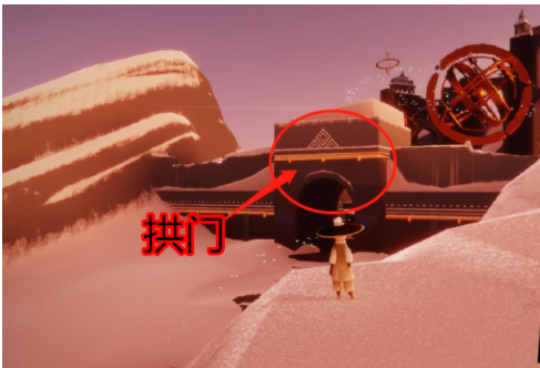 3、接下来注意,不要跑过头了,具体位置如下图。拱门上面的平台就是冥想的位置了。