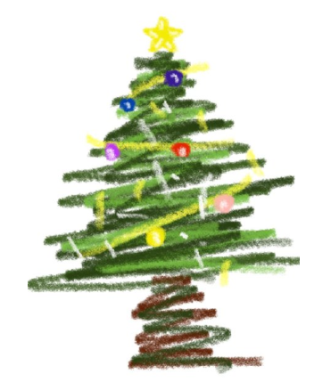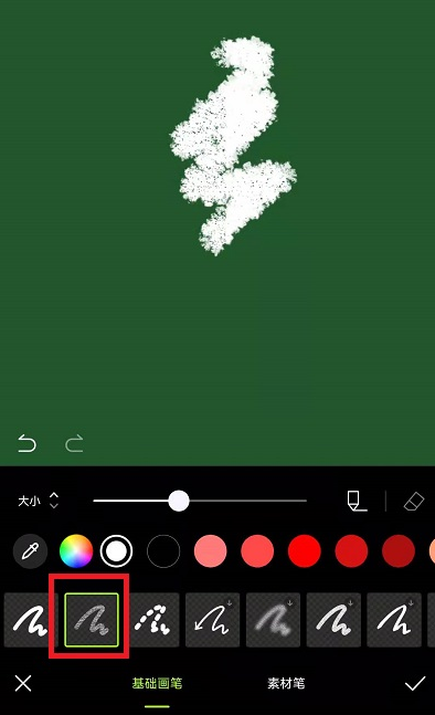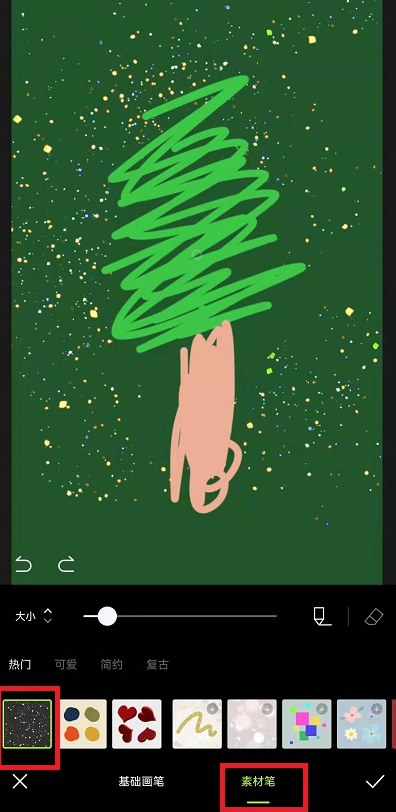 4、然后在涂鸦功能中,我们就可以参考网上的圣诞树图片去进行创作,利用不同的颜色和画笔(最好是使用下图中的画笔,比较像),可以画出圣诞树的树干;