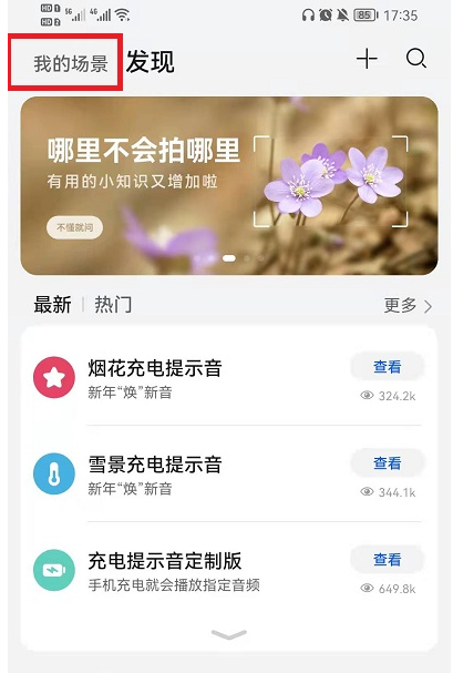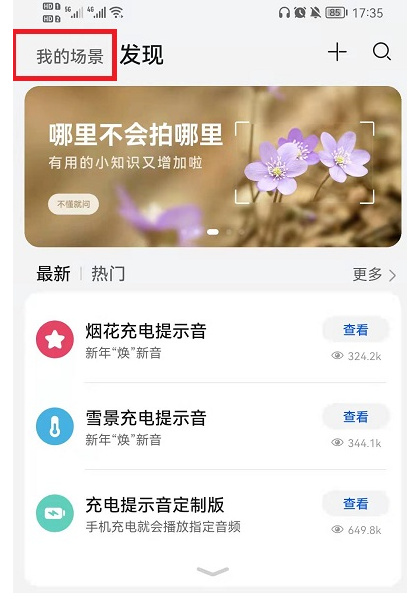 3、在自己的场景中就可以看到此场景功能,打开按钮就可以使用,或者是点击进入就可以进行设定,非常方便,可以实现充电提示音和实时的手机电量播报。
