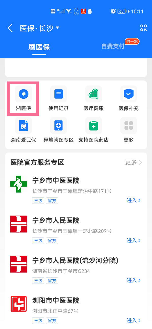 3、点击湘医保 ,点击【定点医院】即可查看。