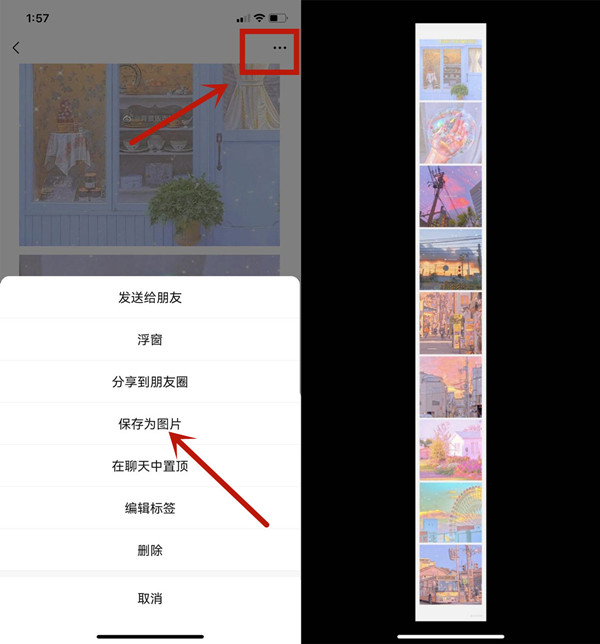 3、点击右上角三点,点击保存为图片,并将长图发到朋友圈即可。