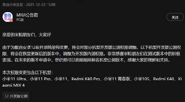 2、而且此前也已经公布了适配miui13的机型名单,但是没有公布推送日期。