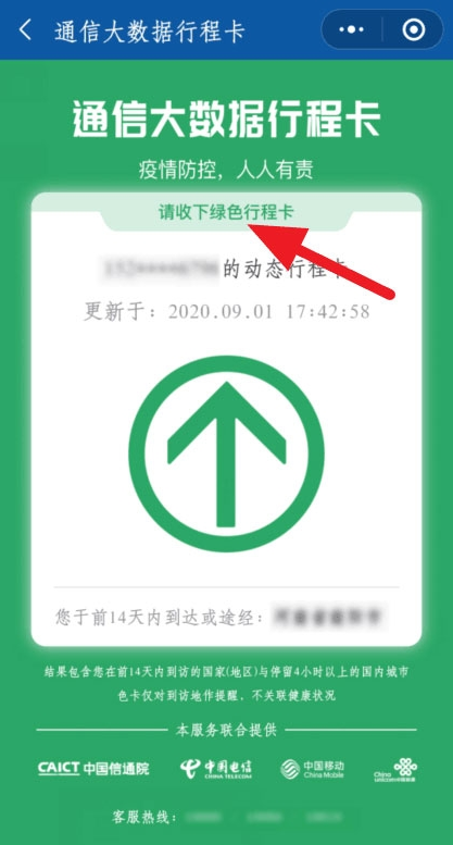 4、即可显示老人的专属行程码~