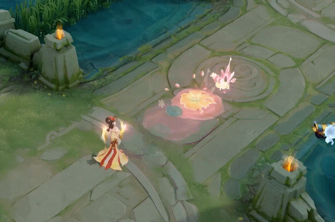 【彩蛋设计】三技能荷花池为一只鸳鸯游动,如遇金蝉英雄时为两只鸳鸯双栖。