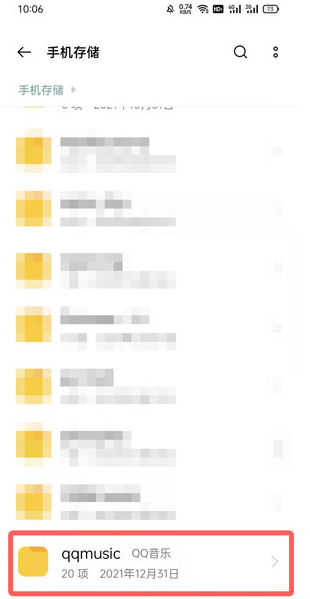 以手机自带的文件管理应用为例,在手机存储文件中,找到【qqmusic】文件夹;