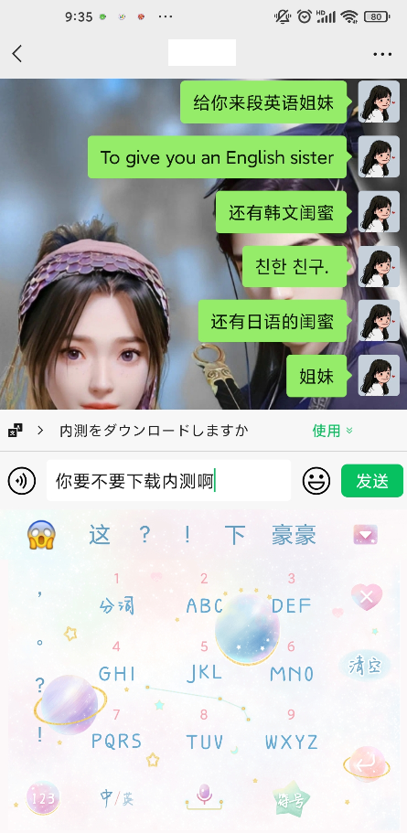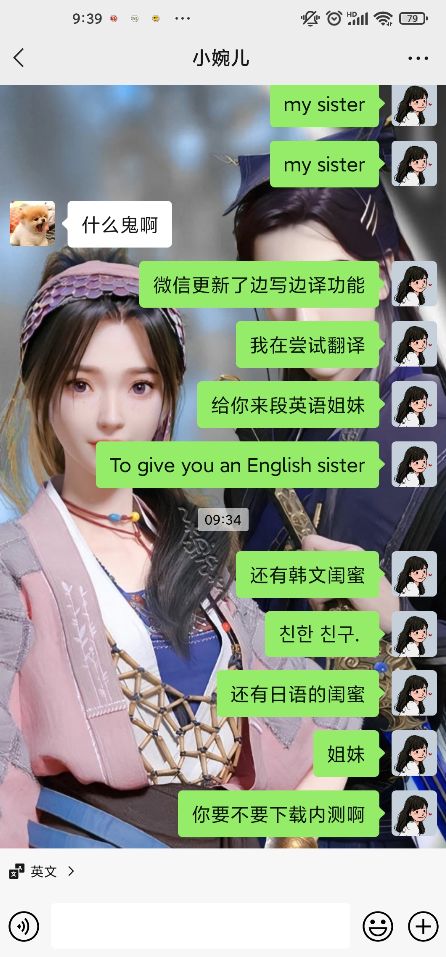 启动微信边写边译功能后,大家在对话框中输入的对话即可自动翻译成其他语言。