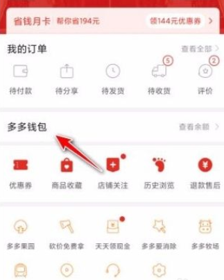 2.接着在个人中心页面中,我们在页面左上方找到“多多钱包”选项,点击该选项再进行下一步操作。