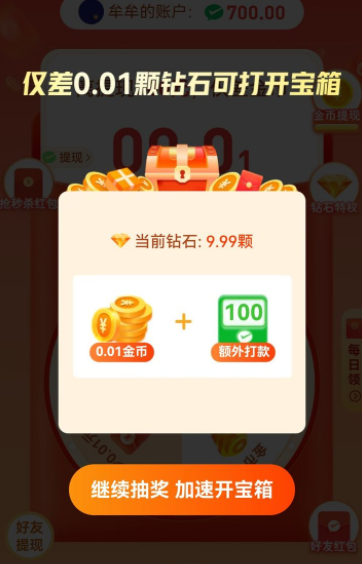 2、最后0.01元要用金币换,又让你集金币。