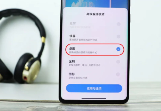 主题下载好后,可以直接点击应用使用此主题,如果你不想改变桌面图标等元素,点击混搭,只勾选桌面,点击应用勾选项,等待一会儿即可。
