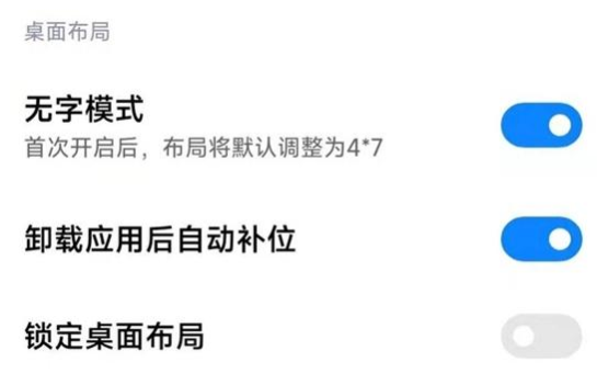 无字模式在升级MIUI13后就可以直接体验到,进入桌面编辑模式后点击右下角设置即可看到,开启后桌面布局会自动变成4×7。