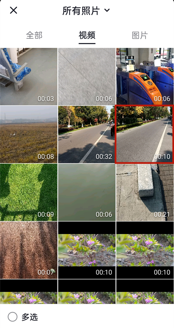 2、选择相册后,选择需要剪辑的视频。