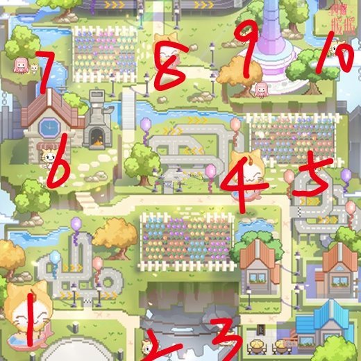 如上图所示,游戏宝小编已经为大家标记出了大喵消失的踪迹位置了,大家按照标记点就完事了。
