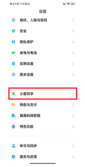 1、用户需要打开手机,在手机中找到【设置】然后在设置界面中找到【小爱同学】进入到功能界面中;