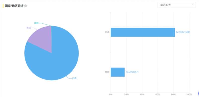 根据广大大数据,「Lemon8」在过去 30 天时间里累计投放了 2015 个去重广告素材,其中 82% 投向了日本市场、18% 投向了泰国市场。
