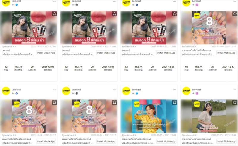 「Lemon8」泰国市场热门广告素材|数据来源:广大大