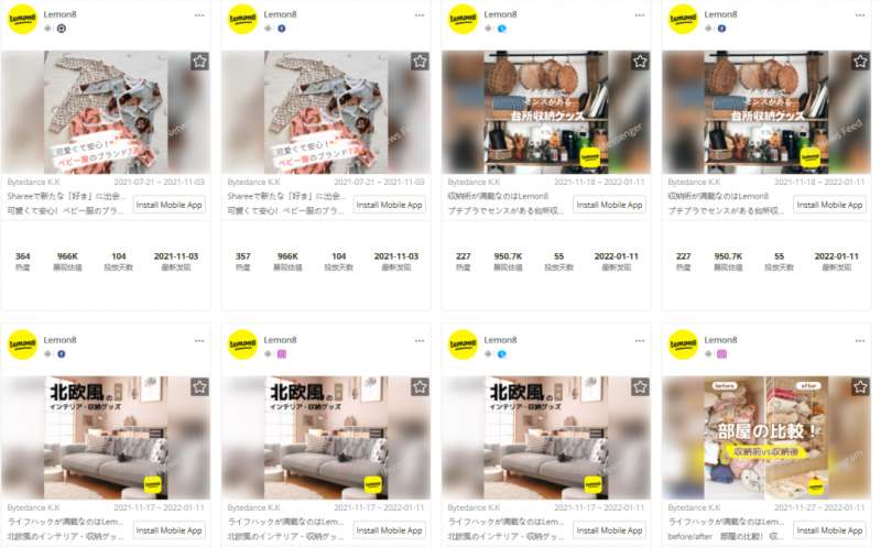 「Lemon8」日本市场热门广告素材|数据来源:广大大