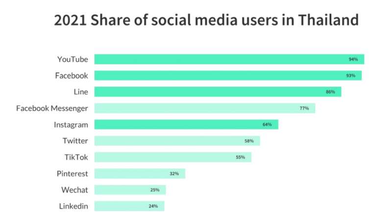 说回泰国市场,除了有时尚流行趋势外,泰国的社交媒体以及 KOL 产业发展的也很不错,YouTube、Facebook、Line、Instagram 以及 Twitter 都有不错的渗透率。