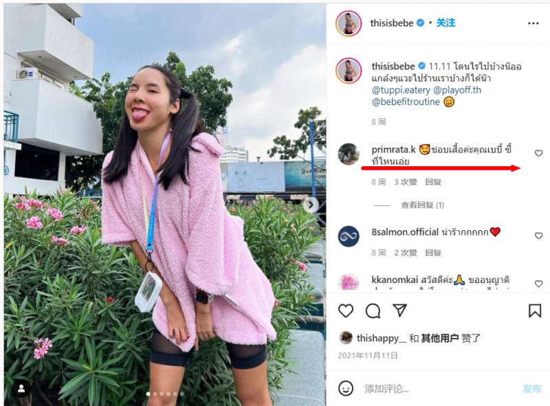根据 Starngage 数据,泰国 Top10 Instagram Influencer 中,尽管具体比例有所不同,但所有 KOL 日常最经常发布的内容所属标签均为 Beauty&Fashion。而且抛开这些顶级 Instagram Influencer,笔者又去查阅了一些粉丝数量在 200 万以内的 Instagram 中腰部 KOL 发现他们在发布穿搭日常时,经常会有粉丝夸赞他们的衣服好看并询问品牌或购买方式。
