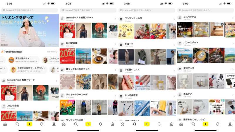 其他的一级标签没什么好说的,着重提一下「Lemon8」的搜索页面。与其说是搜索页,其实倒不如说是推荐页,而且和 Sharee 更现代化、中式化不同,在推荐页明显能感受到「Lemon8」在本地化所做的努力。