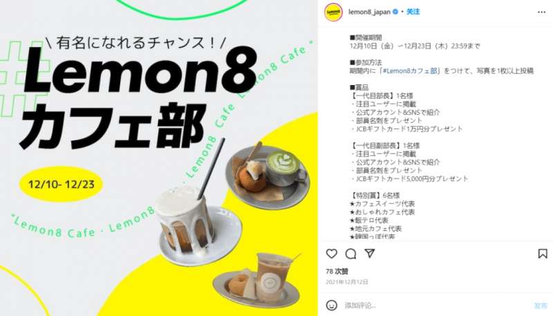1、页面最上方的是近期活动推荐。笔者曾在多个分析日本市场的文章中提到,日本用户习惯大贴纸、大字横版海报。「Lemon8」完全遵循了这种模式。