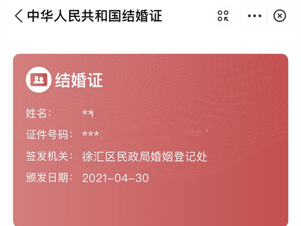 3、选择结婚证,添加完毕后即可查看结婚证信息。