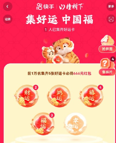 集好运::完成任务可以收集好运卡,前1万名集齐5张好运卡必得666元红包