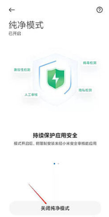 即开启纯净模式以后,用户仅可以安装经过小米安全认证的应用。
