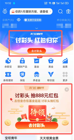 2、还可以通过理财页面点击活动进入讨彩头活动中;