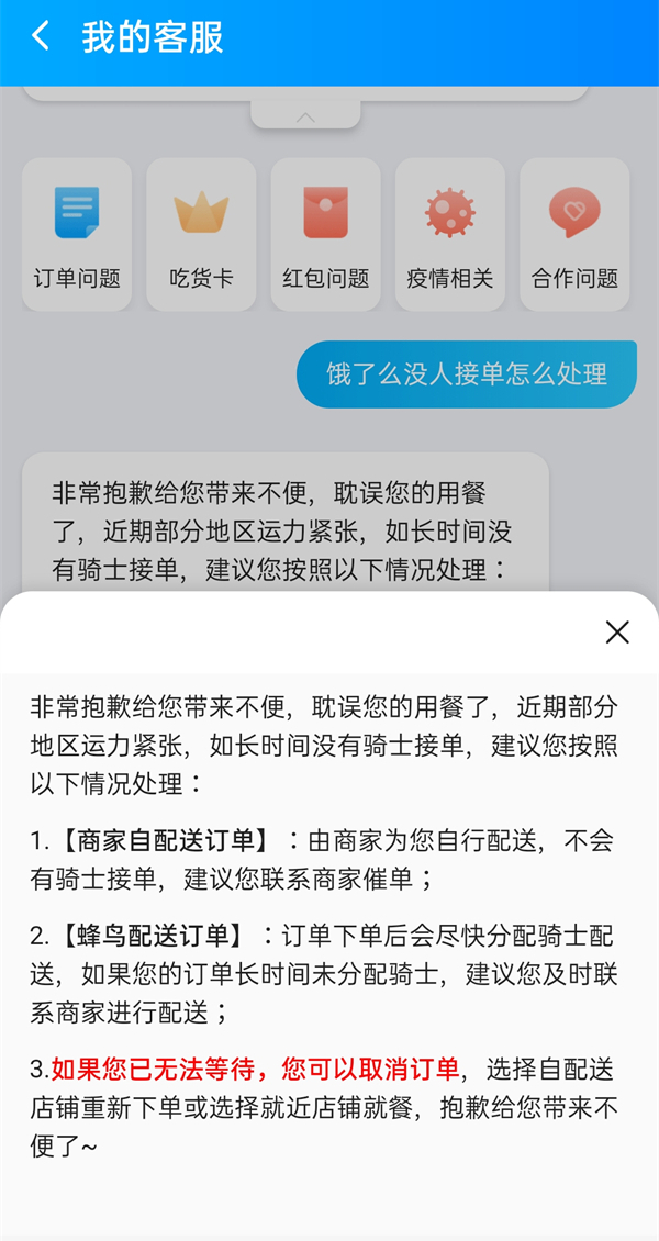 在饿了么是我们平常都在用的外卖APP,但有的时候会遇到订单长时间没人接单的情况,那么遇到这种情况该怎么处理呢?下面就和小编一起来看看具体的解决方法吧。