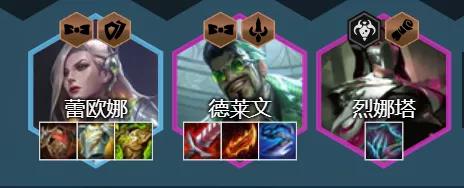 装备选择:开局装备优先拿反曲弓>腰带,阵容必备鬼书(后期打回复阵容)+羊刀(德莱文后期输出的关键)